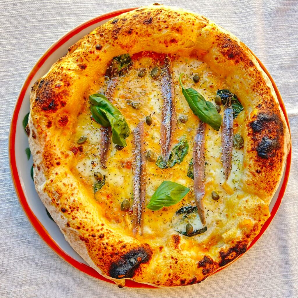 Pomodoro biologico 100% italiano, Mozzarella Fior di Latte, Alici di Cetara, Capperi, Origano del Pollino, basilico, olio evo